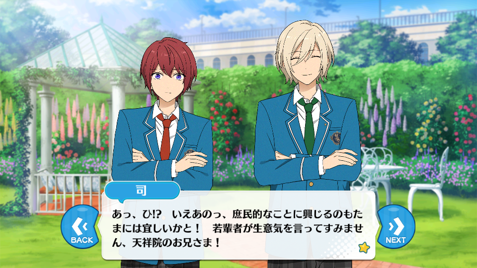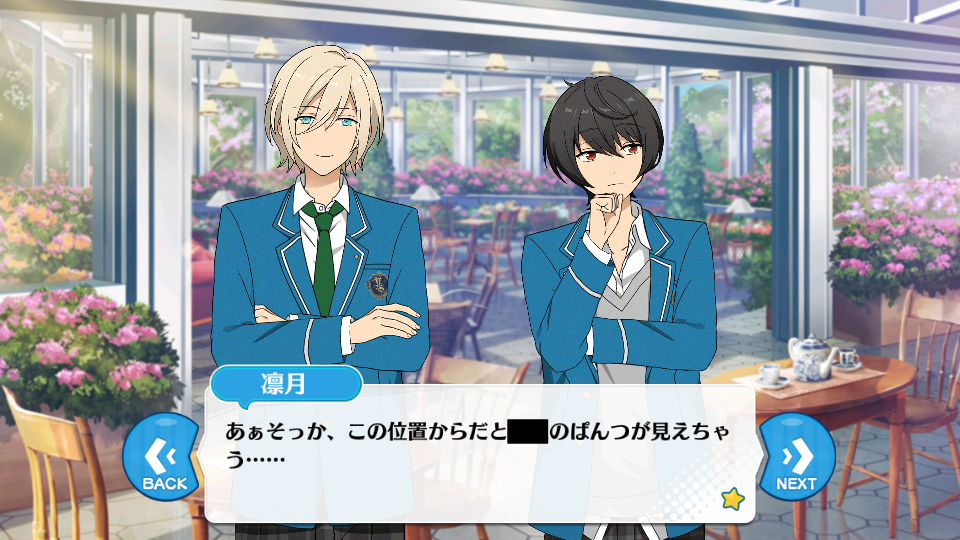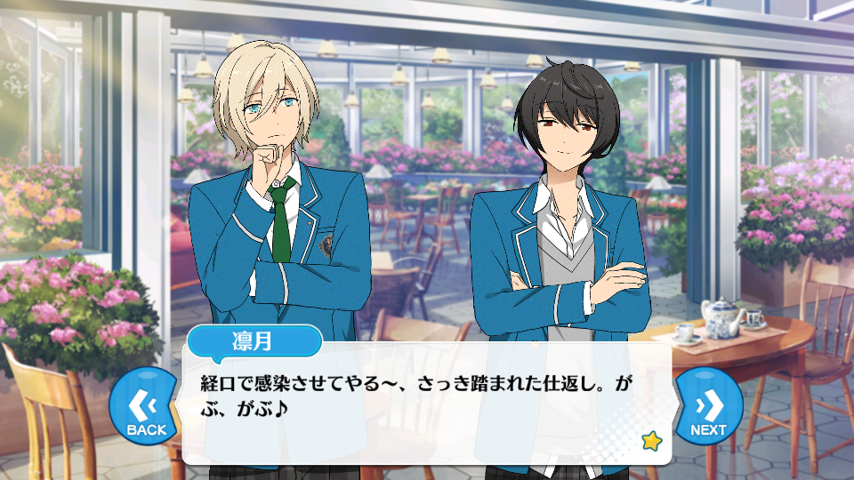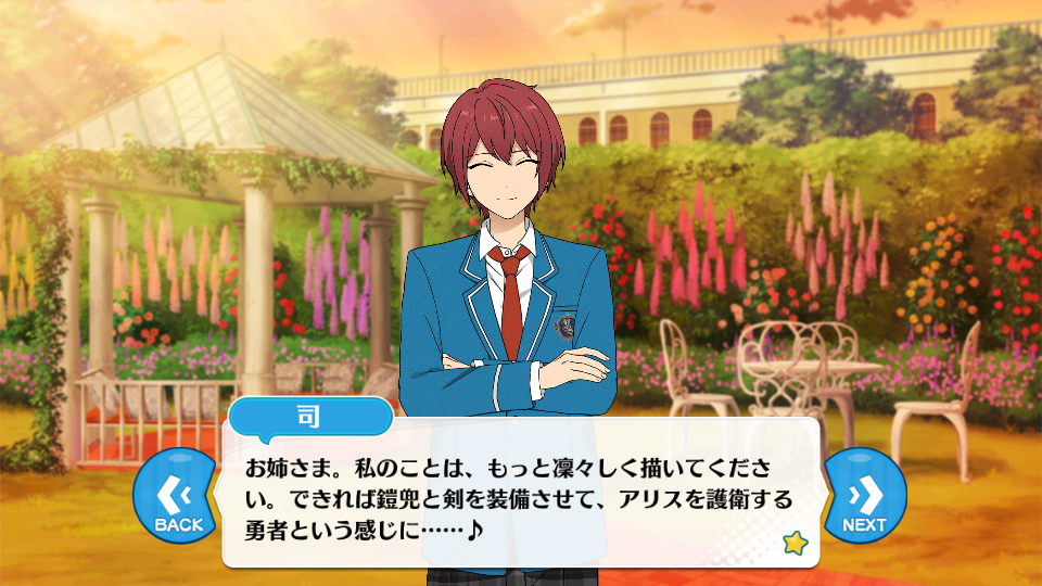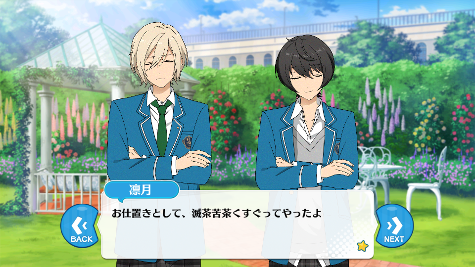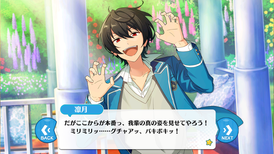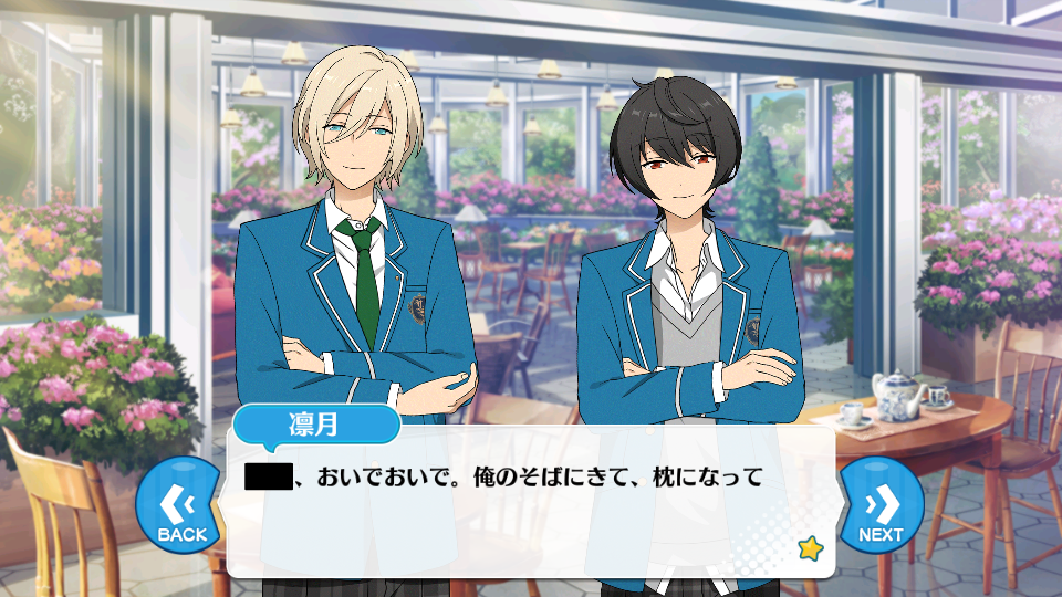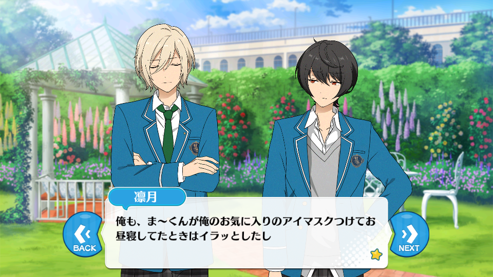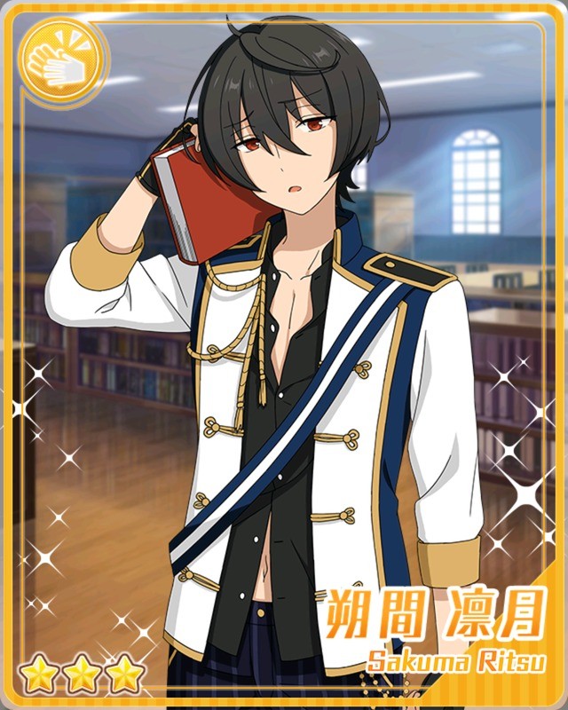RT。今のところあんスタでいちばん掴みどころのない子。兄とか幼なじみとかいろいろおいしいので興味ぶかいのですが、基本寝てるし…。制服からシャツがでろ~んと出てるしネクタイもつけてないし、たぶん誰かが着替えさせないとふつうにパジャマで登校したんじゃないかなこの子。