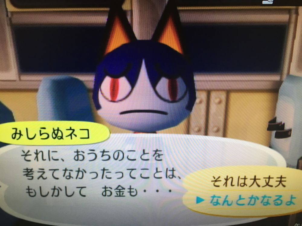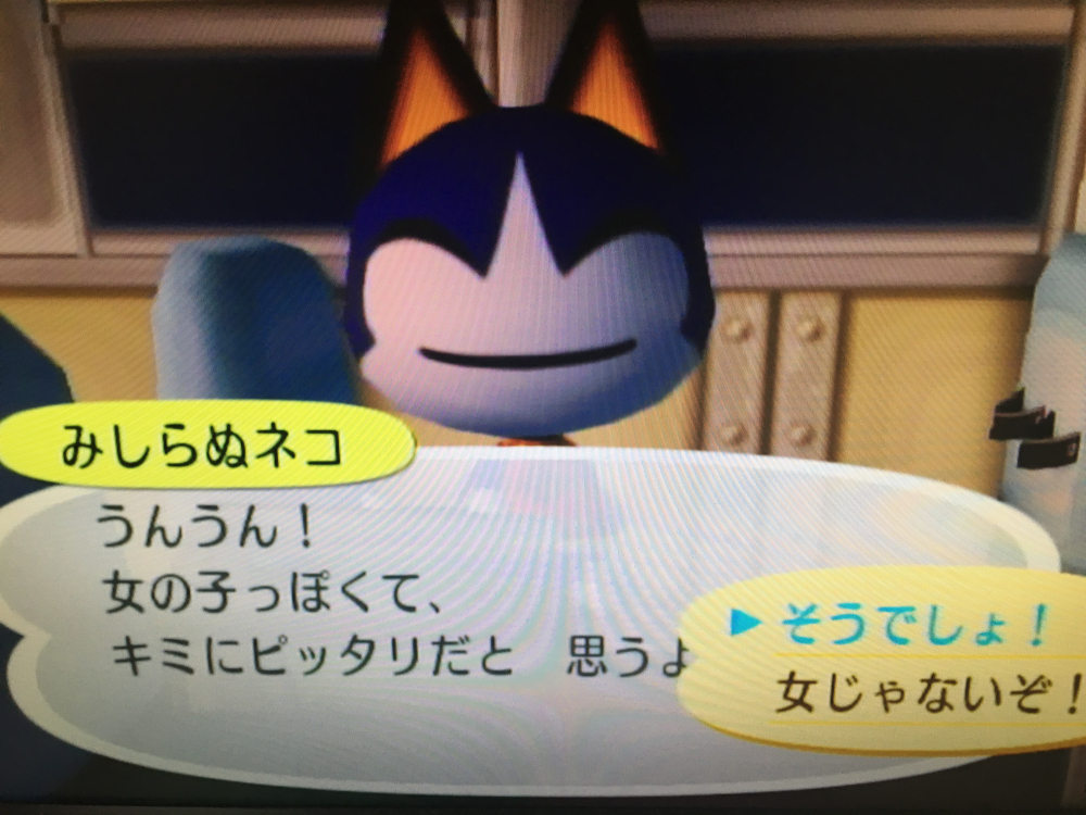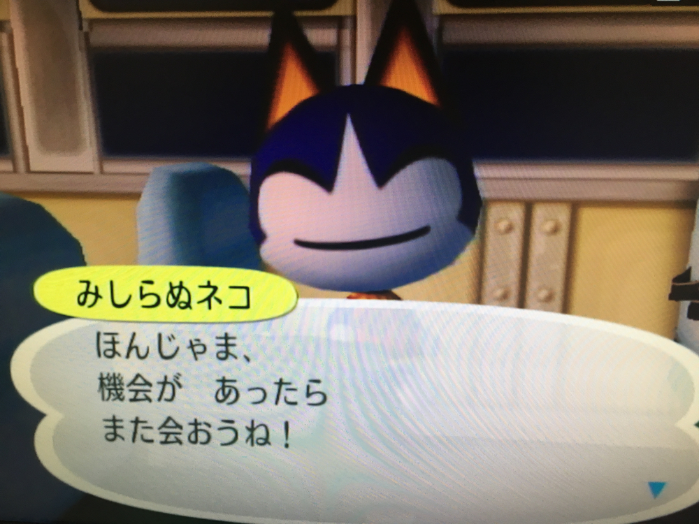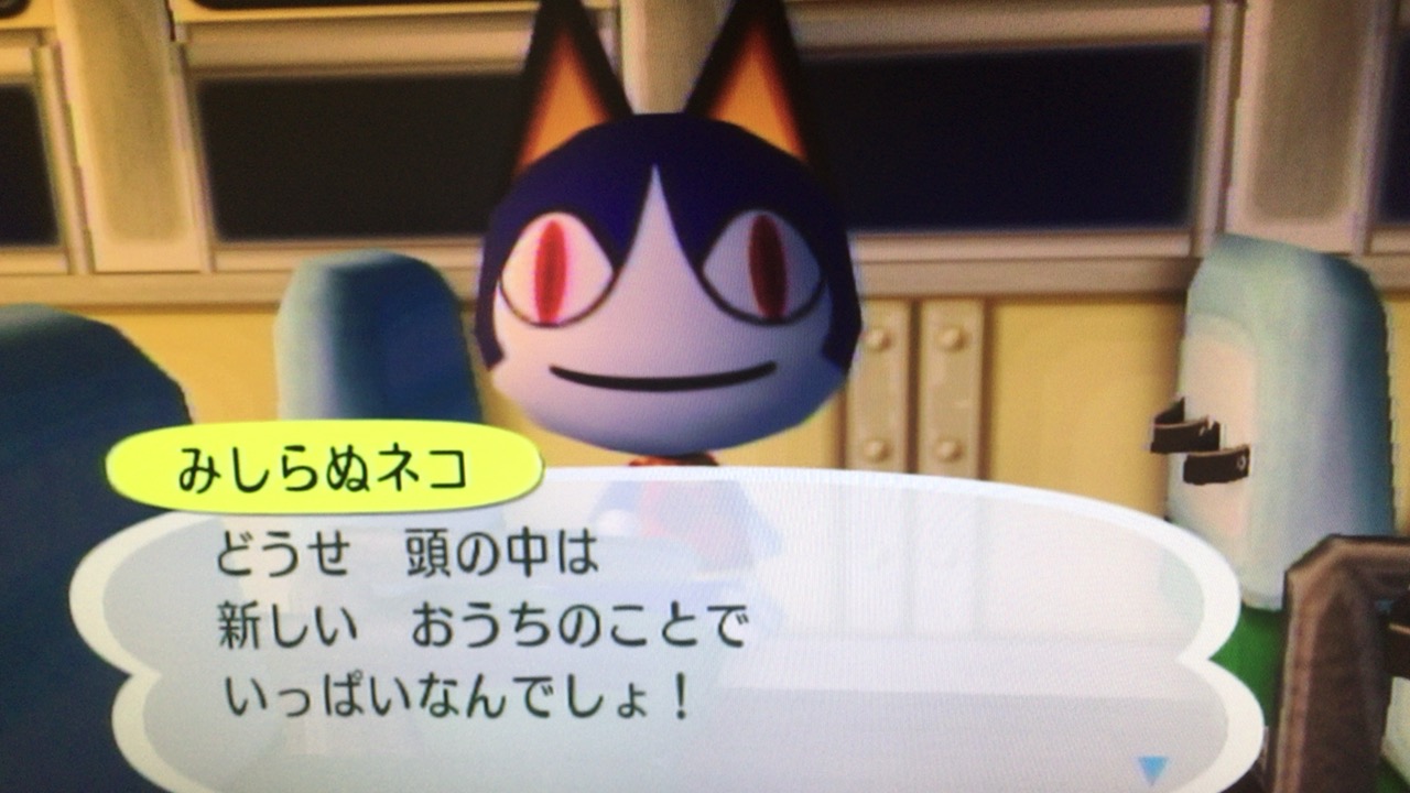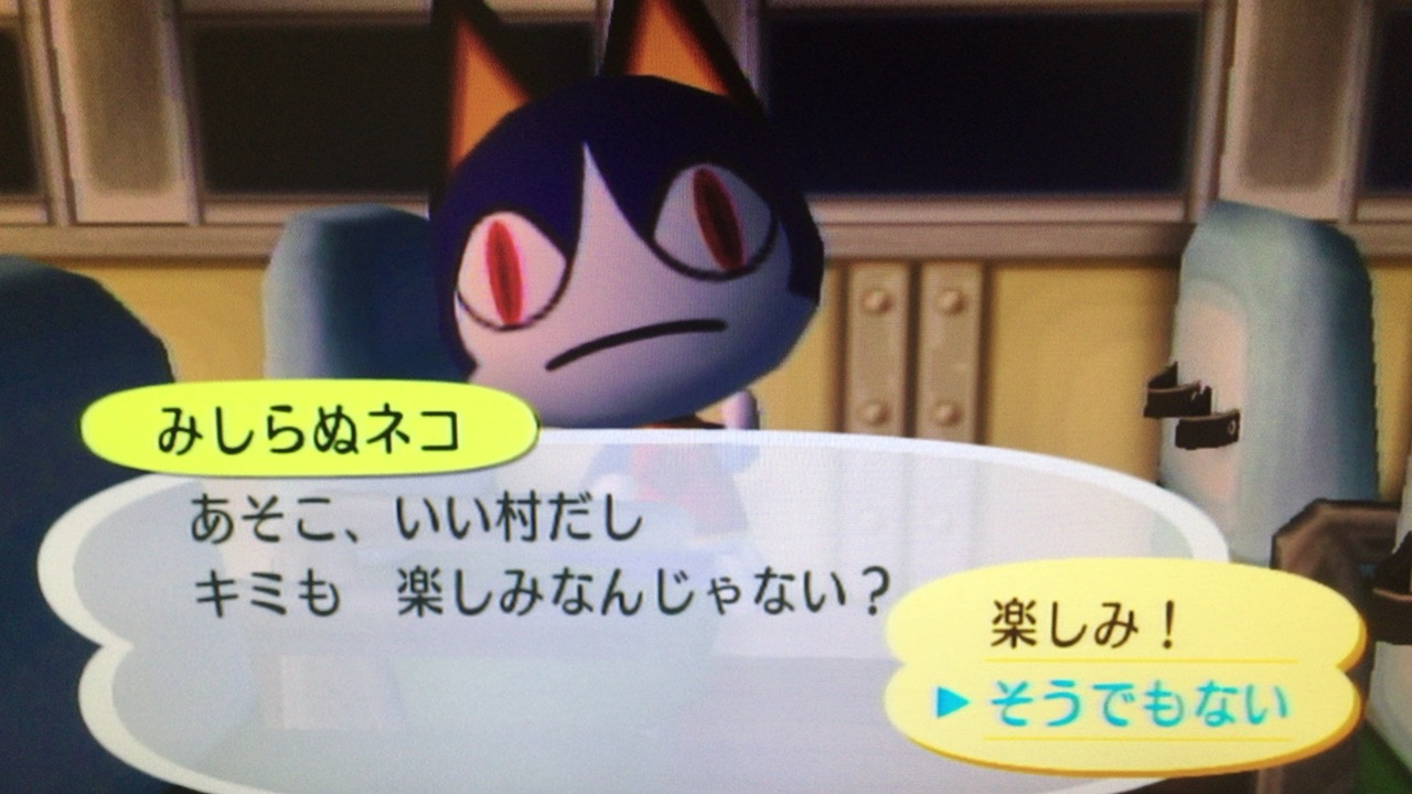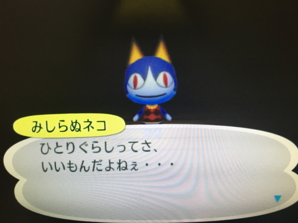 街へいこうよ どうぶつの森 みしらぬネコまとめ どうぶつの森 2018年03月21日 0 街森のみしらぬネコの登場シーンのまとめです。 初っ端から案内役をやってくれます。 自由が好きなみしらぬネコさん。 村へ向かうバスに乗ります。 「女じゃないぞ!」を選択した場合。 「カッコイイだろ!」→「男じゃないもん!」を選択した場合。 この誤り方の差…。ごめんよぉ!って。 世渡りが上手そうなのはネコさんの方ですけどね! 別の会話パターンで好きなやつ 全てを見透かす目をしていますよね。 そしてお別れ…。 家の電話はみしらぬネコさん直通です。 ネコさんとおしゃべりしたいのに、設定に関する話しかさせてくれない。 ログイン時は毎回出てきてくれます。 しばらくログインしてなかった時。 毎日ログインしてる時。 誕生日も祝ってくれます! 「楽しい1日にしてね!」みたいなセリフを想像してたら、コレですよ。 以上!